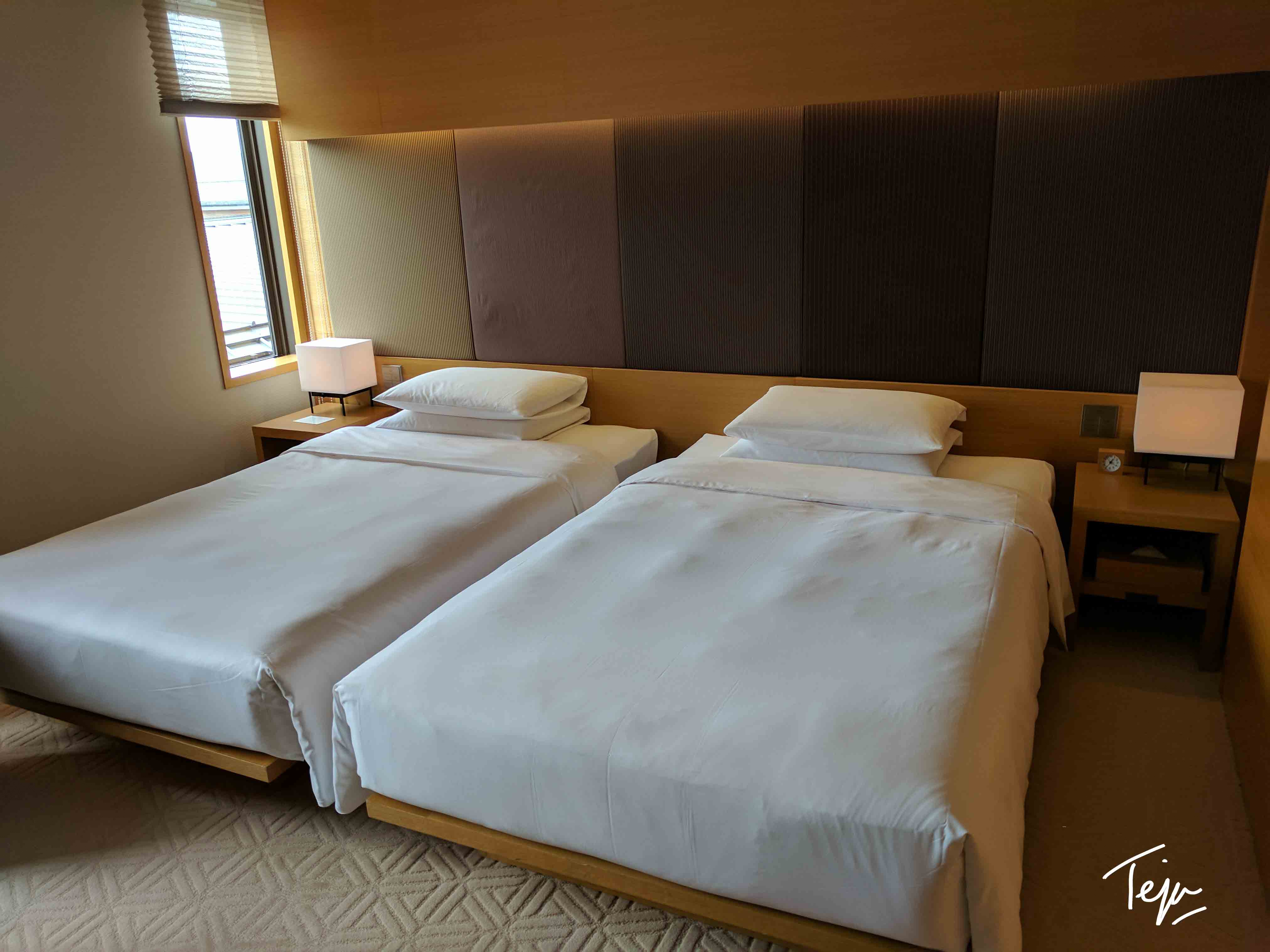 Our rooms were located on the 3rd floor and featured no views. The rooms looked fresh, modern, and featured the same kind of minimalist design as Park Hyatt rooms. The accommodations had two twin beds arranged next to each other while my parents had a single king bed in the same space. There was a decently large LCD TV on an entertainment stand with a desk extension. Wifi was free and fast throughout my stay.