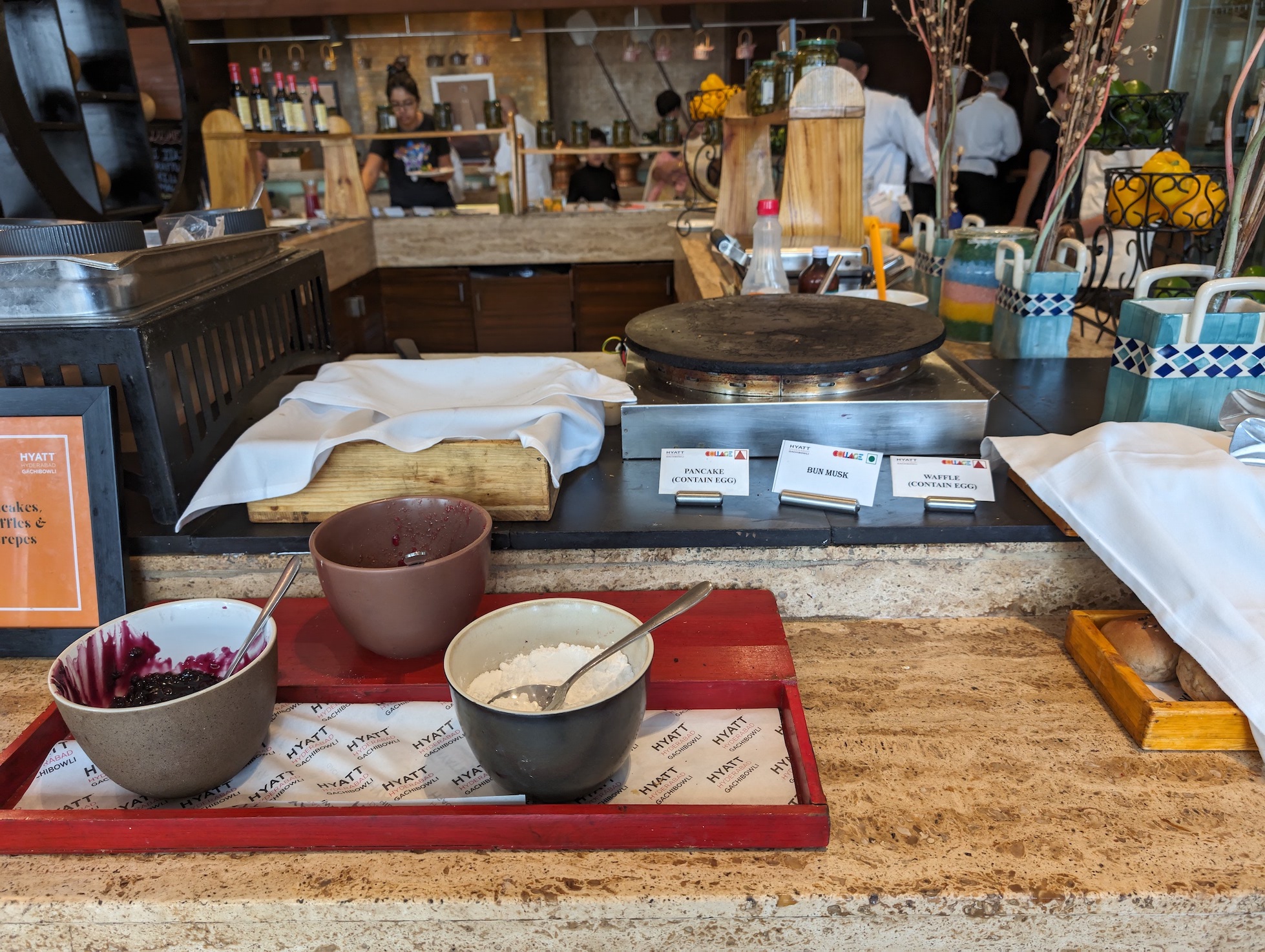 Breakfast is served everyday at the main hotel restaurant “Collage” from 6:30 am to 10:30 am. The buffet is not as extensive as what you would find at Westin Hyderabad or the Park Hyatt Hyderabad, but the space was much less crowded and still featured some good food. No doubt that the buffet is still very large and features both Western options as well as Indian ones.